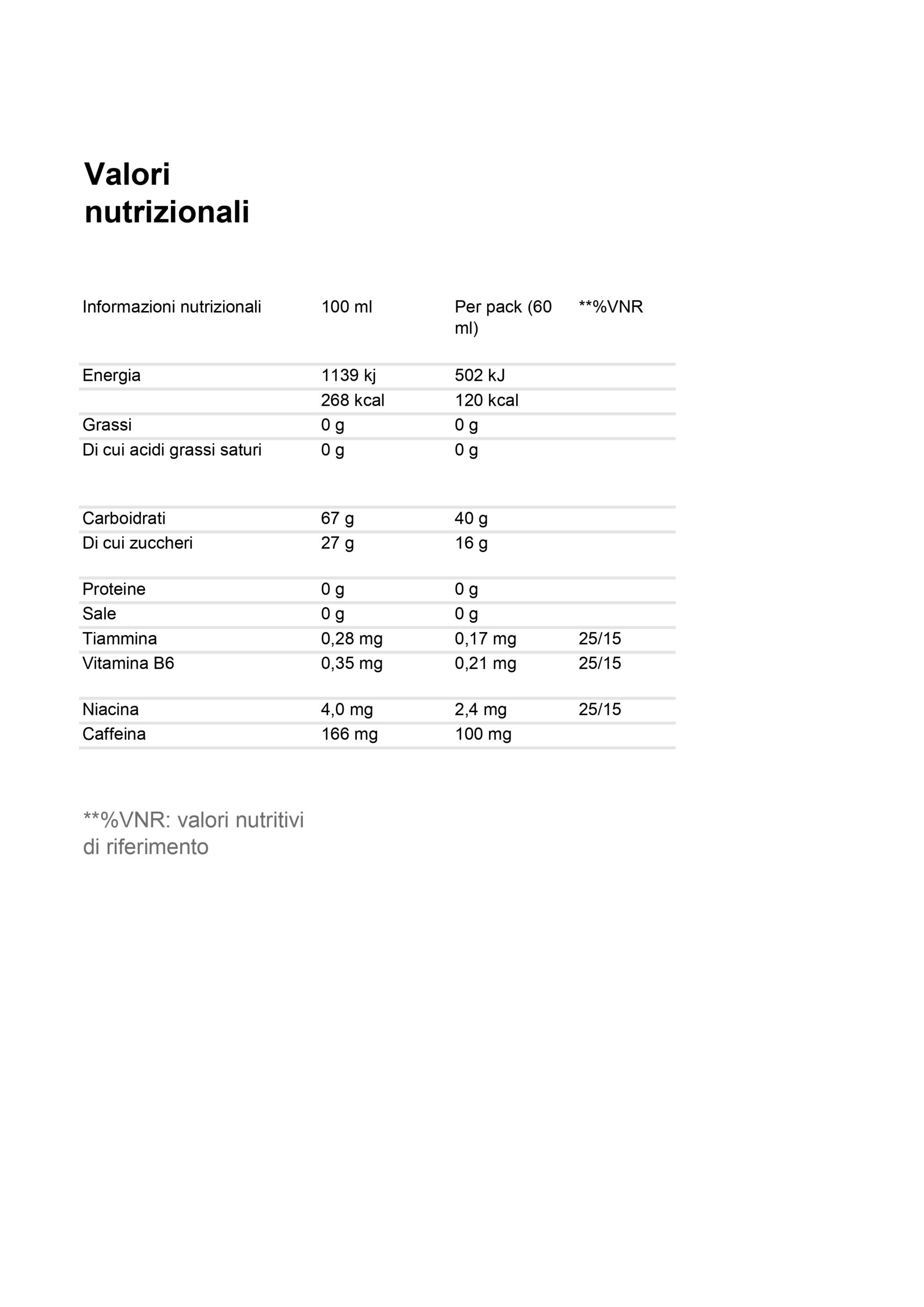 - 40g di carboidrati per gel da 60ml